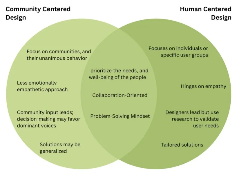 CCD addresses the collective needs of the community; HCD caters to the unique needs of individual users while still addressing the collective needs of the community. Choosing between CCD and HCD depends on the specific problem at hand and the context in which the design will be implemented.