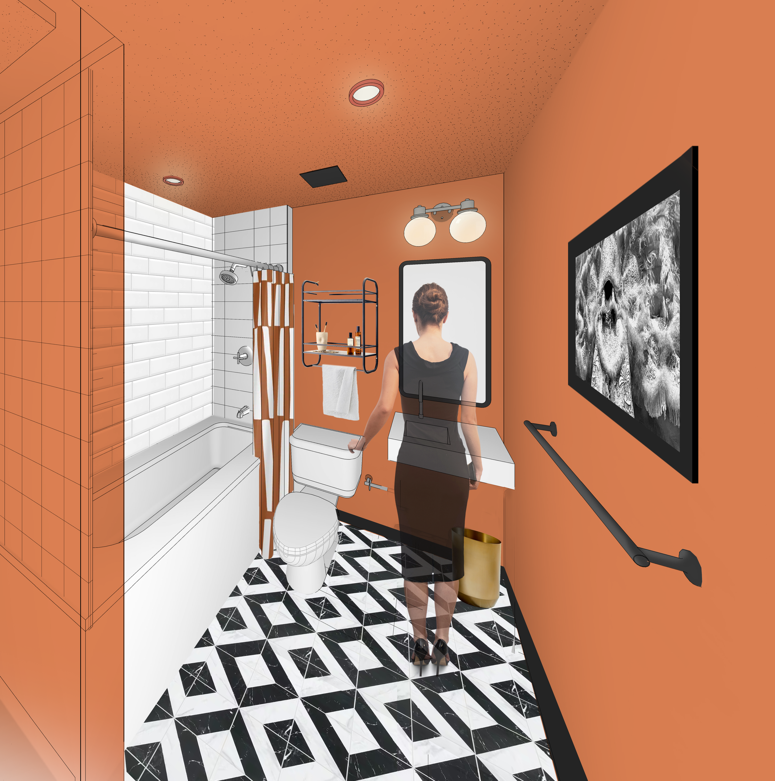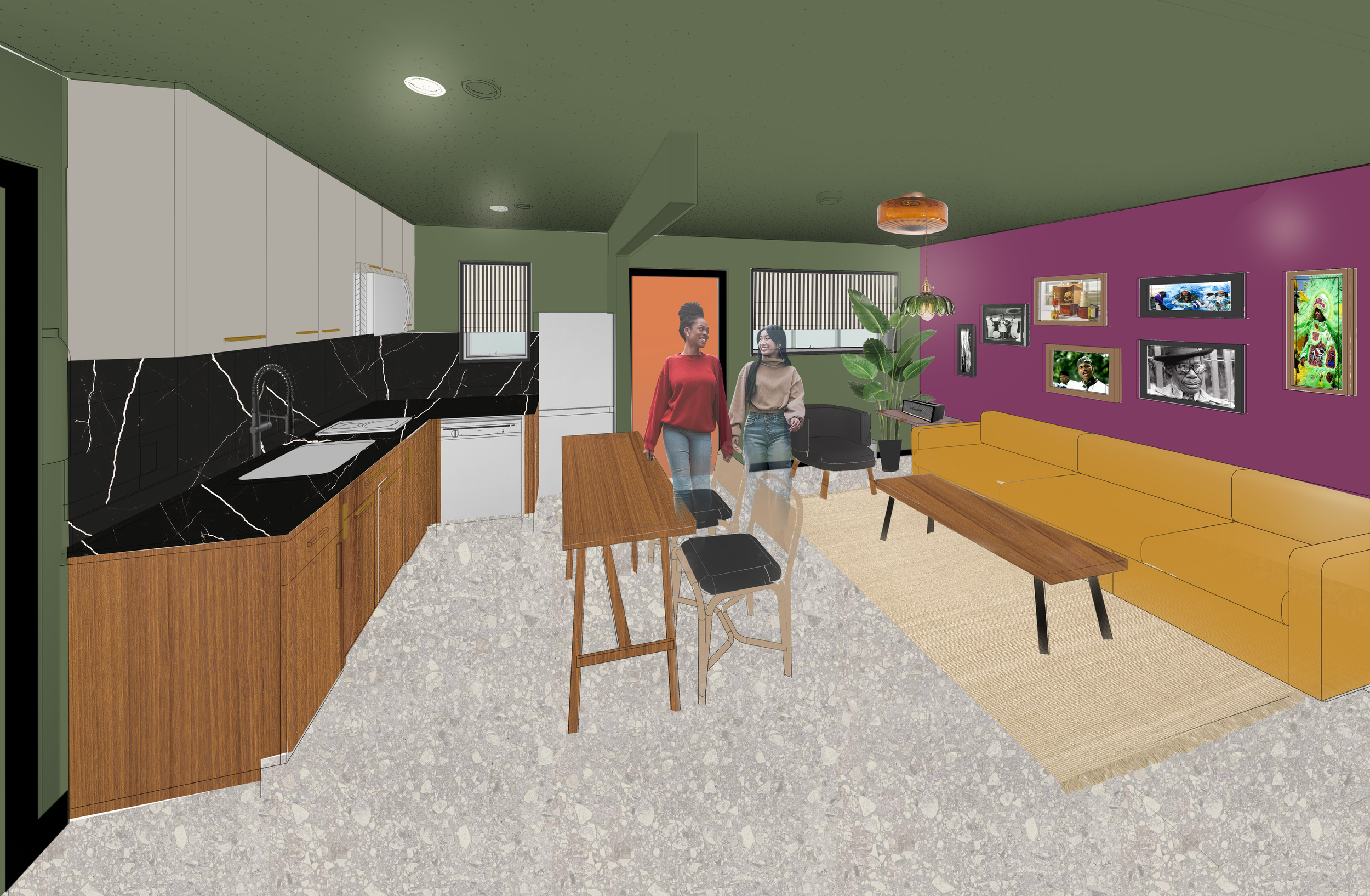 The renovation of the 1960s-era two-story apartment building will consist of 13 new hotel rooms adjacent to the newly-rehabilitated Dew Drop Inn in Central City. The design incorporates mid-century modern design elements and celebrates the unique and vibrant culture of Central City.